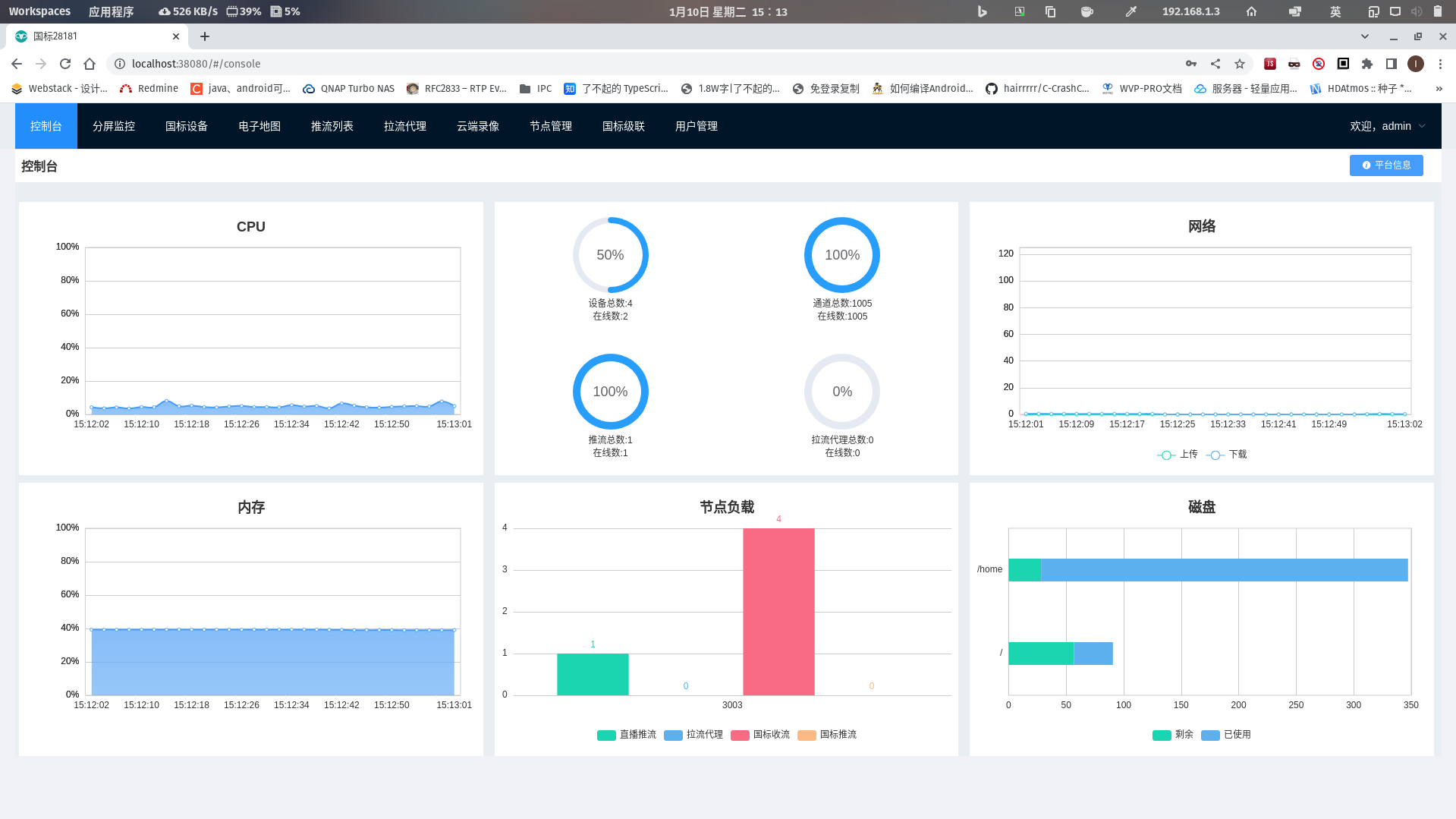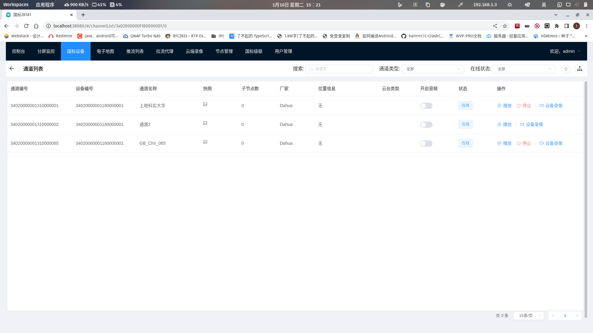 WEB VIDEO PLATFORM是一个基于GB28181-2016标准实现的开箱即用的网络视频平台,负责实现核心信令与设备管理后台部分,支持NAT穿透,支持海康、大华、宇视等品牌的IPC、NVR接入。支持国标级联,支持将不带国标功能的摄像机/直播流/直播推流转发到其他国标平台。